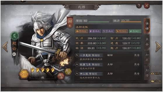 在三国志战略版中,赵云作为攻防兼备的顶级武将,其战法搭配直接影响队伍强度与战场表现。赵云的核心优势在于自带战法“一身是胆”,该被动技能提供全程洞察状态,免疫所有控制效果,同时提升武力、统率、智力和速度四项属性,使其兼具输出与生存能力。基于这一特性,赵云战法选择需围绕最大化输出或强化团队辅助两个方向展开,同时结合兵种适应性调整策略。